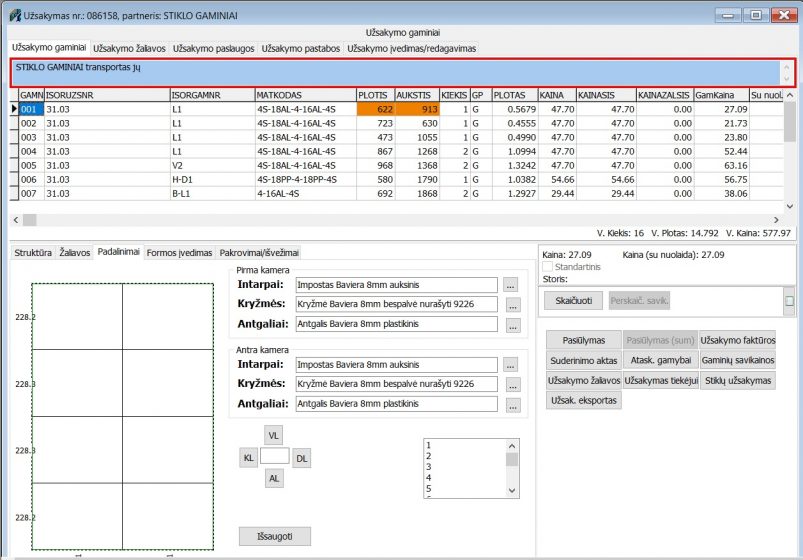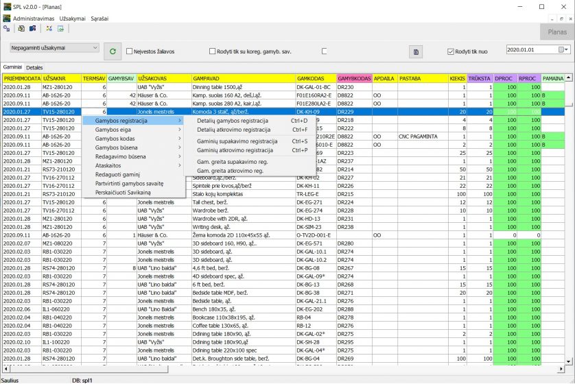 SPL includes: standard products, order management and production management modules Main functions: Order entry by entering non-standard and standard products. Cost calculation of products. Registration of manufactured products. Production reports, cutting and veneering module.